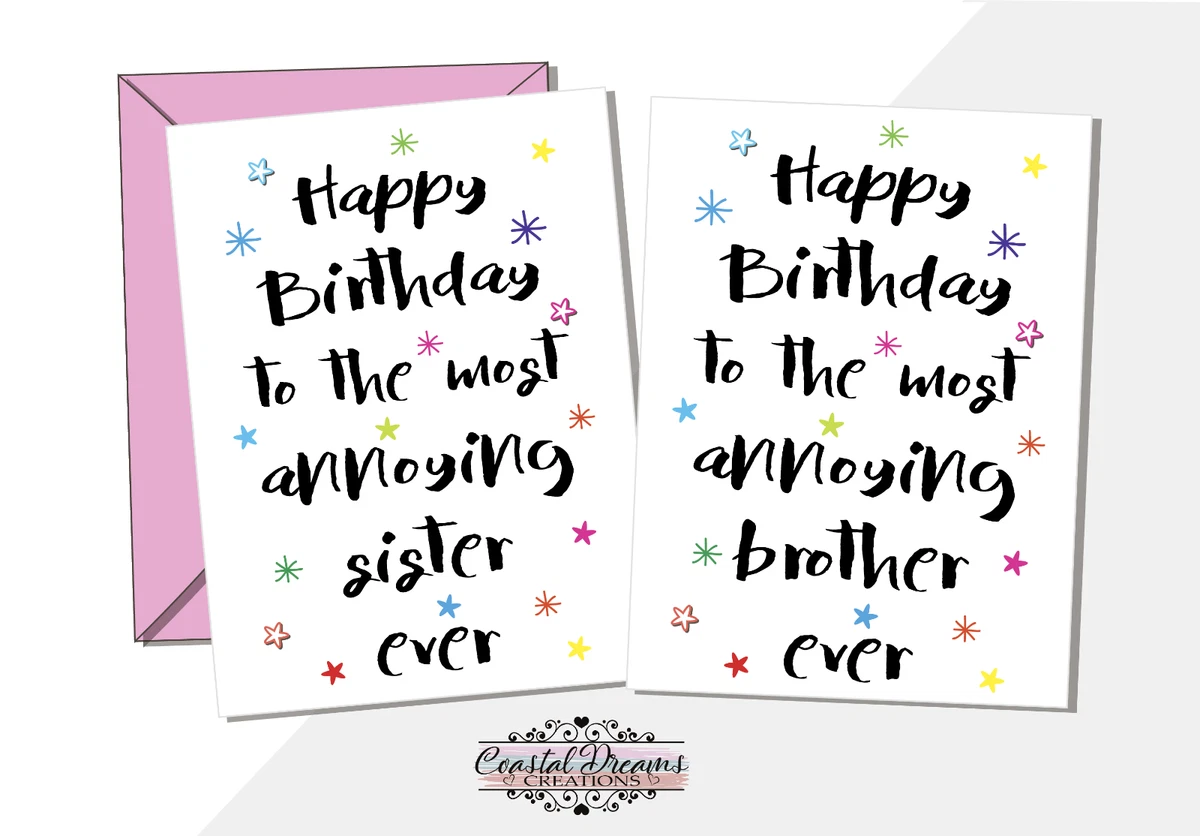Happy Birthday To The Most Annoying Brother admin, Happy Birthday To The Most Annoying Brother – If you buy through a BGR link, we may earn an affiliate commission, helping support our expert product labs. Facebook can be pretty annoying sometimes. OK, it can be pretty annoying most of the time. . From college to the pros, let’s take a look at the most annoying fan bases across sports youโd think they would be happy, right? Wrong. Pats fans still think the NFL is out to get them . Happy Birthday To The Most Annoying Brother Source : www.pinterest.co.uk Annoying Little Brother Card | Scribbler Source : www.scribbler.com Funny Sibling Card ‘happy Birthday to the Most Annoying Sister Source : www.pinterest.co.uk Funny Sibling Card ‘happy Birthday to the Most Annoying Sister Source : www.etsy.com Funny Sibling Card ‘happy Birthday to the Most Annoying Etsy Source : www.pinterest.com Funny Sibling Card ‘happy Birthday to the Most Annoying Sister Source : www.etsy.com Funny sibling Card ‘Happy Birthday to the most annoying sister Source : www.ebay.com Happy Birthday Brother Cards โ The Most Annoying One | Birthday Source : www.pinterest.com Funny sibling Card ‘Happy Birthday to the most annoying sister Source : www.ebay.com Happy Birthday Lil’ Brother! You’re hardly annoying at all anymore Source : www.pinterest.com Happy Birthday To The Most Annoying Brother Funny Sibling Card ‘happy Birthday to the Most Annoying Sister : “Very annoying,” agreed @Juwai_Ahmed. “I don’t even know wtf to do when my FAMILY sings happy birthday to me can’t imagine having a bunch of strangers do that,” said @Panda1idiota. Swift . Get obsessed with us. Five days a week, Pop Culture Happy Hour serves you recommendations and commentary on the buzziest movies, TV, music, books, videogames and more. Join arts journalists Linda . 2024